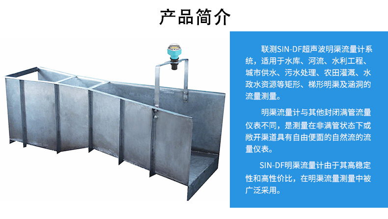 超聲波明渠流量計(jì)與量水堰槽配合使用,測量明渠內(nèi)水的流量。