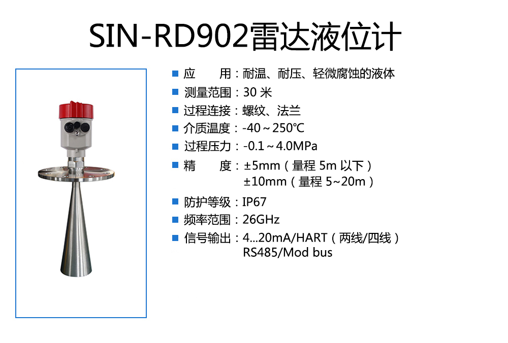 90 系列傳感器是 26G 高頻雷達(dá)式物位測量儀表,測量最大距離可達(dá) 80 米。天線被進(jìn)一步優(yōu)化處理,新型快速的微處理器可以進(jìn)行更高速率 的信號(hào)分析處理,使得儀表可以用于各種強(qiáng)腐蝕性液體的測量。
