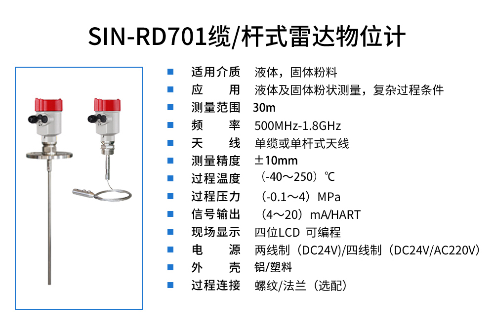 聯(lián)測(cè)_SIN-RD701纜/桿式雷達(dá)物位計(jì)_是適用于液體及固體粉狀_