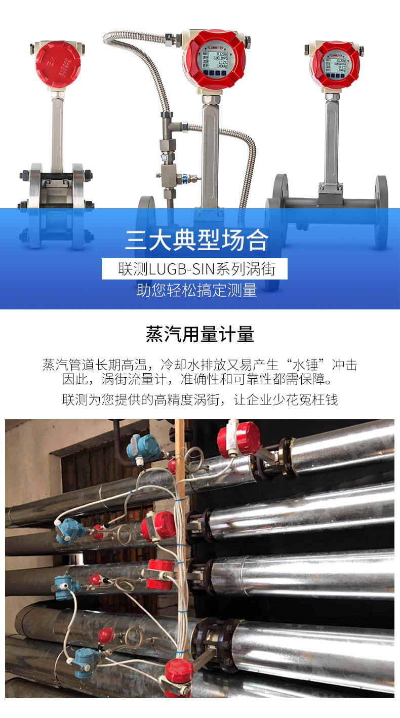 LUGB-SIN-A渦街流量儀表廣泛用于供熱公司、熱力公司、化工行業(yè)等行業(yè),對過熱蒸汽、飽和蒸汽、壓縮空氣和一般氣體、水和液體的計量和控制。加厚本體,可有效避免現場管道振動帶來的數據波動和誤差。多用于高溫場合,例如過熱蒸汽等工況。