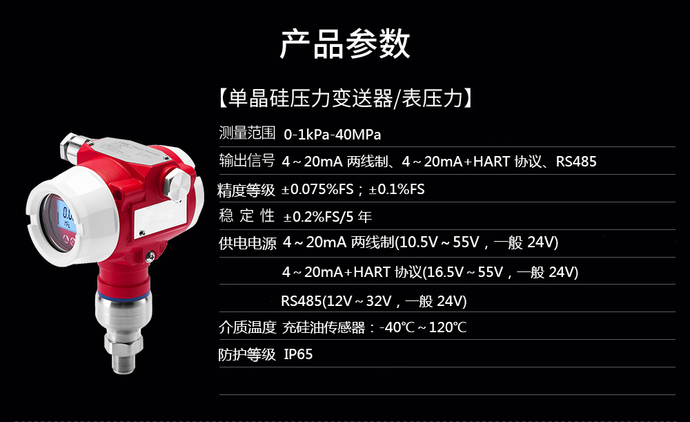 單晶硅壓力變送器用于測(cè)量液體、氣體或蒸汽的液位、密度、壓力,然后將其轉(zhuǎn)變成4-20mAHART電流信號(hào)輸出