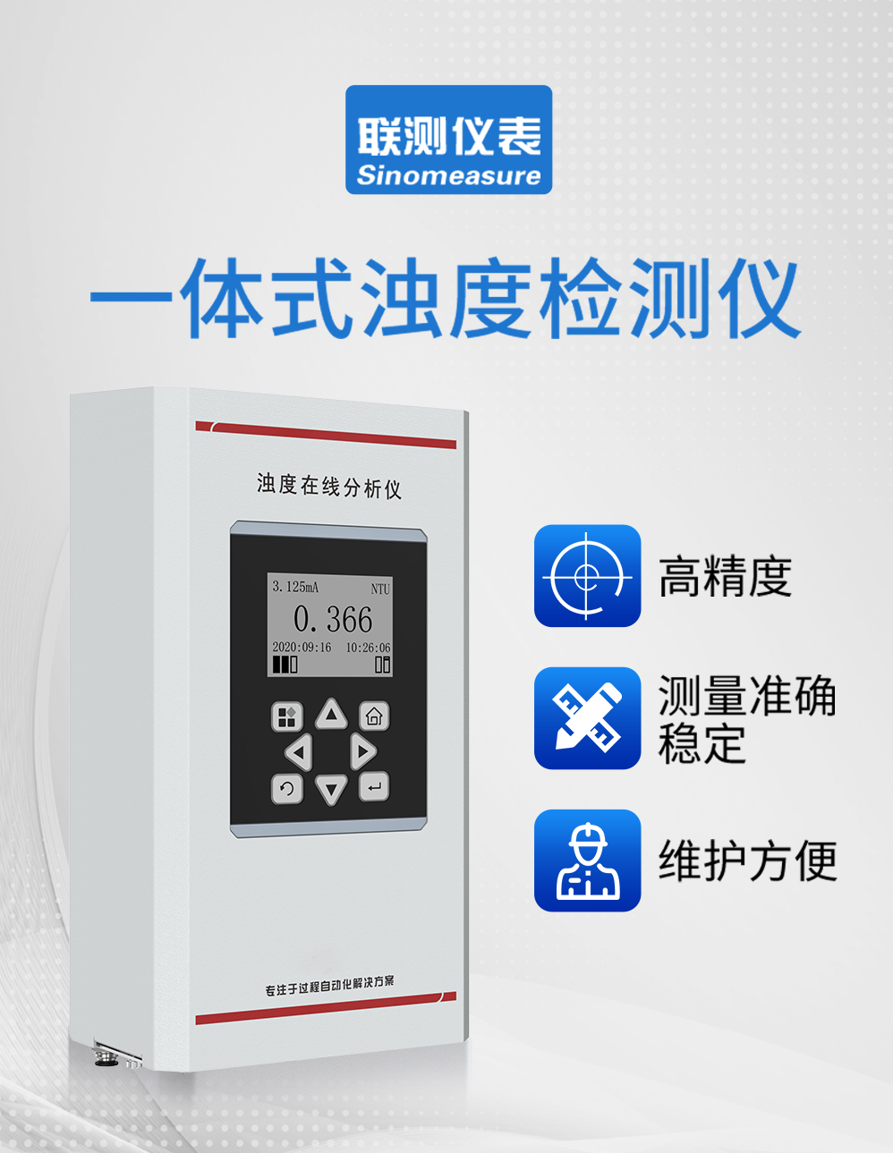 濁度在線分析儀將一束激光,從空氣中,按垂直于水面的方向,射 入水中。激光被水中的懸浮顆粒散射,水中的傳感器檢測出與入射光成 90 度方向的散射光強(qiáng)度,并根據(jù)校準(zhǔn)表,將散射光強(qiáng)度換成成為濁度值